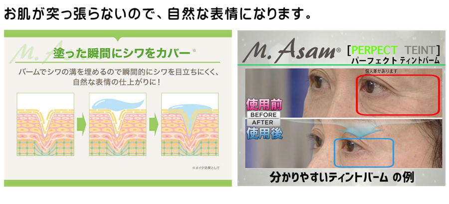入れる感覚で軽くトントンなじませてください。 - ティントバームはファンデーション前にも後にも使えますので、ポロポロ出る場合は、ファンデーション後にもお試してくださ い。